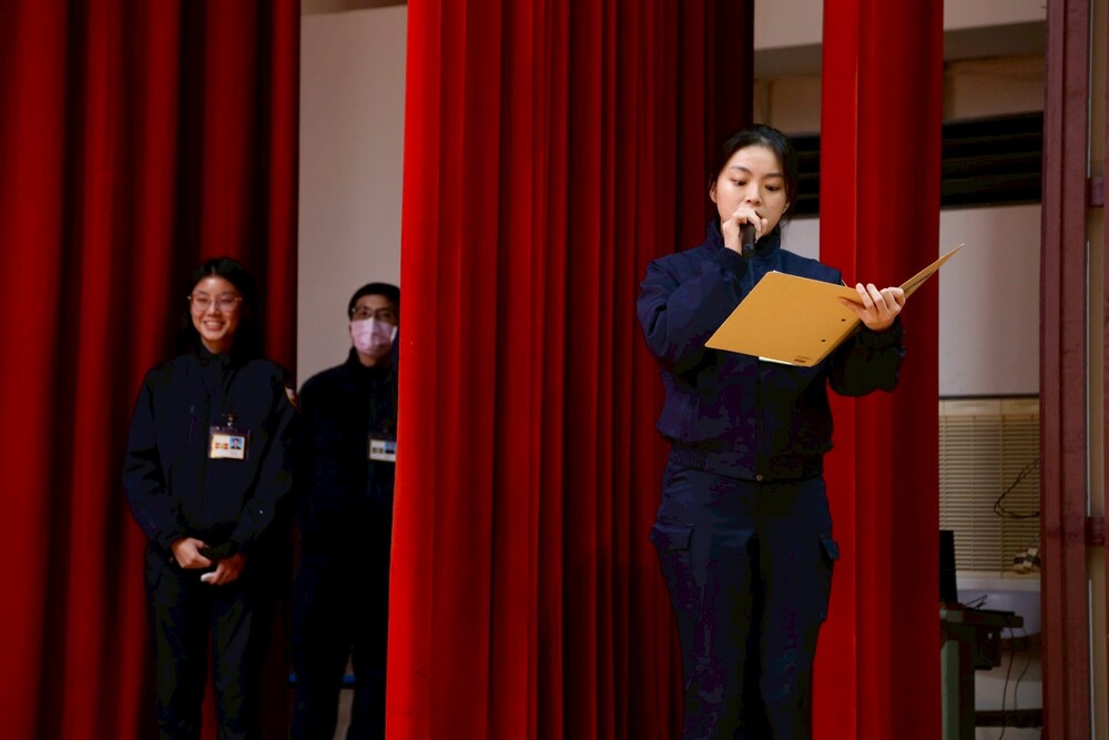 114年12月份總隊晚點名於12月12日在本校大禮堂舉辦,本次規劃由今年9月參與教育部青年百億圓夢計畫至美國學習的93期1隊水上系莊雯淇同學及甫自英國倫敦國王學院取得碩士學位的區隊長李念修進行經驗分享。